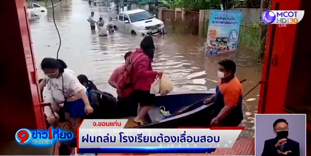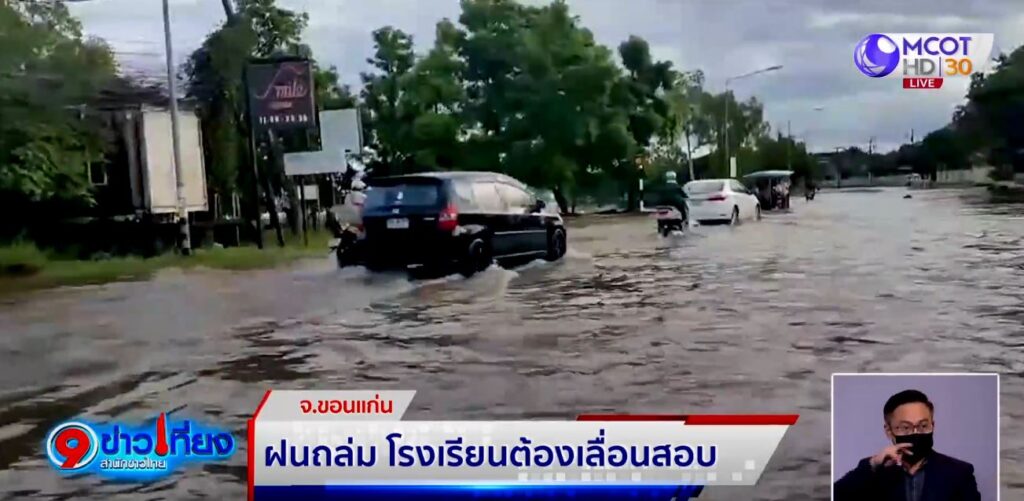 ขอนแก่น 26 ก.ย. – ในตัวเมืองขอนแก่น มีฝนตกหนักตลอดทั้งคืน ส่งผลให้น้ำท่วมหลายจุด ล่าสุดโรงเรียนบางแห่งประกาศปิดเรียนเป็นเวลา 1 วัน และต้องเลื่อนสอบออกไป