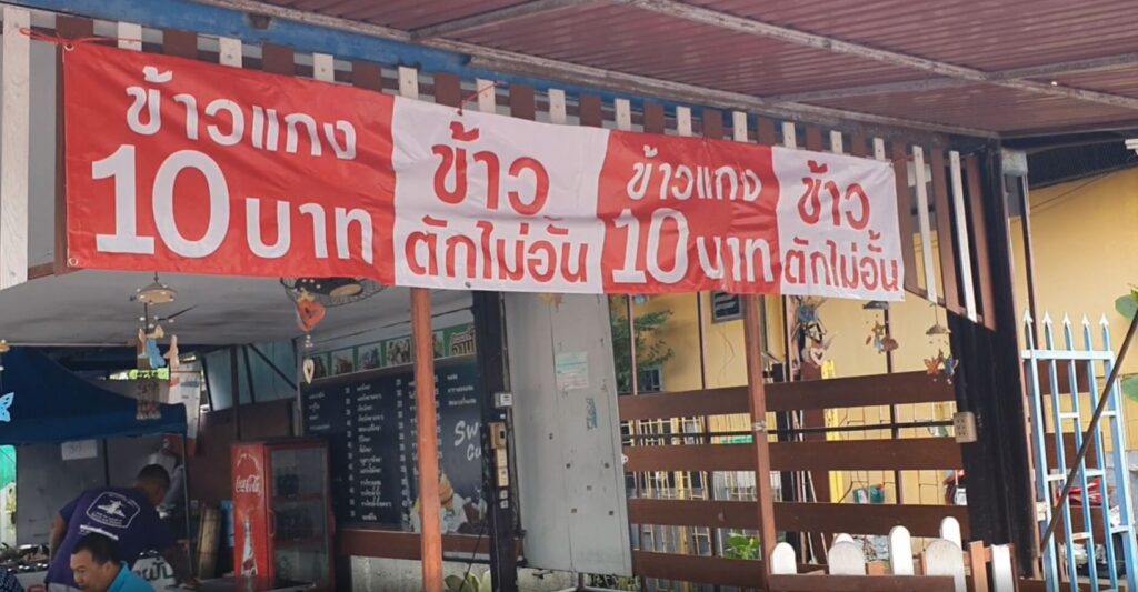 ร้านข้าวแกงร้านนี้มีชื่อว่า “ร้านข้าวแกง 10 บาท ตักข้าวไม่อั้น” อยู่บริเวณสวนรัก ถนนกรุงศรีนอก ต.ในเมือง อ.เมือง จ.สุรินทร์ ตักกับข้าวขายถ้วยละ 10 บาท ทั้งต้มผัดแกงทอด และน้ำพริกผักสด ส่วนข้าวสวยไม่อั้นให้เติมได้จนกว่าจะอิ่ม โดยกับข้าวจะออกมาตลอดทั้งวัน ซึ่งมีลูกค้าเข้ามาอุดหนุนสั่งอาหารรับประทานกันตลอด
