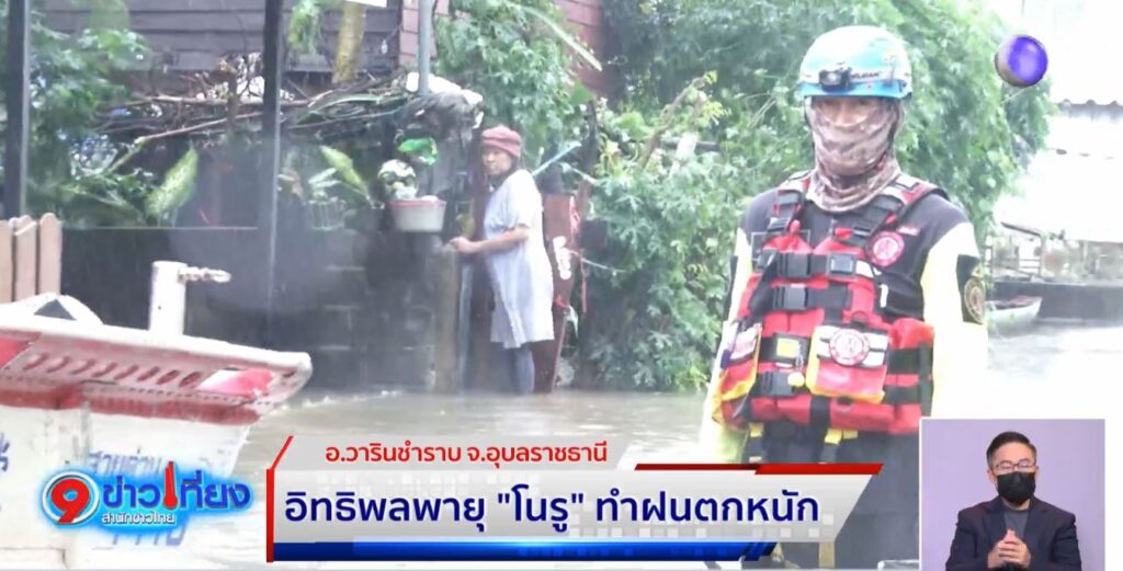 สายฝนที่ตกโปรยปรายตลอดทั้งเช้าที่ผ่านจนถึงขณะนี้ ยังไม่หยุดตก ทำให้ประชาชนบ้านหาดสวนยา ต้องฝ่าสายฝนขนของกันอย่างเร่งด่วน เนื่องจากระดับน้ำสูงขึ้นจากเมื่อวาน บางส่วนยังคงเฝ้าของอยู่บริเวณชั้น 2 ของบ้าน เนื่องจากกลัวผู้ไม่หวังดีเข้ามาขโมยของ และได้อพยพมาพักบริเวณริมถนน และต้องล็อกเรือพายไว้กับแนวกั้นถนน เนื่องจากกลัวเรือหาย ในส่วนอิทธิพลของพายุโนรู ชาวยังมีความกังวลในเรื่องของระดับแม่น้ำมูลที่กำลังเพิ่มสูงขึ้นตลอดเวลา เกรงว่าจะซ้ำรอยปี 62 ที่น้ำท่วมใหญ่เมืองอุบลราชธานี และในช่วงเช้ามีปริมาณสูงกว่าตลิ่งอยู่ที่ 1.73 เมตร