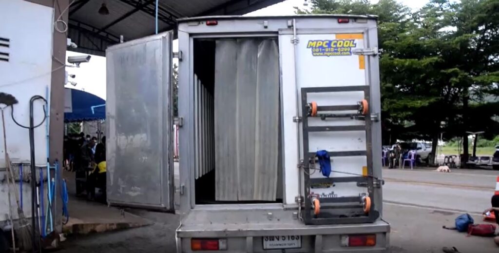 กาญจนบุรี 28 ก.ย. – รวบกระบะ 2 คัน ซุกแรงงานเถื่อนรวม 39 คน เบียดเสียดมาในรถคาด่านตรวจหน้าเขื่อนวชิราลงกรณ จ.กาญจนบุรี และยังมีแรงงานอีก 43 คน นั่งหลับในไร่มันสำปะหลัง รอนายหน้ามารับไปส่งประเทศเพื่อนบ้าน