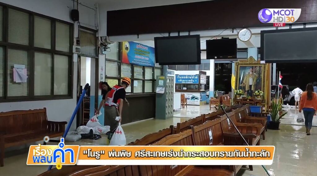 ส่วนที่ศรีสะเกษ พายุโนรู พ่นพิษทำฝนตกหนักน้ำเอ่อท่วม บขส. และบ้านเรือน โดยที่สถานีขนส่งผู้โดยสาร บขส.กันทรลักษ์ น้ำได้เอ่อเข้าท่วมขังเต็มพื้นที่ เจ้าหน้าที่จากหน่วยเฉพาะกิจกรมทหารพรานที่ 23 จัดกำลังเข้าช่วยเหลือ โดยได้นำกระสอบทรายเสริมแนวกั้นน้ำเพื่อบรรเทา ไม่ให้น้ำเข้าไปยังสำนักงานบริษัทขนส่ง ขณะที่ปริมาณน้ำเพิ่มสูงขึ้นเรื่อย ๆ
