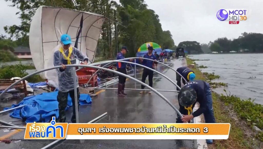 ขณะที่จังหวัดอุบลราชธานี ทหารช่วยอพยพชาวบ้านหนีน้ำรอบ 2-3 เพราะ กอนช.คาดแม่น้ำมูลล้นตลิ่งเกือบ 3 เมตร โดยกองอำนวยการน้ำแห่งชาติ หรือ กอนช. สั่งย้ายชาวบ้านที่อพยพหนีแม่น้ำมูลล้นตลิ่งสูงกว่า 2 เมตร จากจุดแรกที่เข้าพักอาศัยไปอยู่ที่ใหม่ รับมือน้ำอาจขึ้นสูงแล้วไหลท่วมศูนย์อพยพ ทำให้ชาวบ้านบางครอบครัวต้องย้ายหนีน้ำท่วมครั้งนี้ 2-3 รอบ ส่วนทหารเร่งนำกำลังเข้าช่วยย้ายเต็นท์ที่พักของชาวบ้าน 150 ครอบครัว ซึ่งหนีน้ำเป็นกลุ่มแรก ๆ ตั้งแต่ปลายเดือนสิงหาคมเข้าพักอาศัยอยู่บริเวณรอบที่ทำการโครงการปรับปรุงคุณภาพน้ำ (บ่อบำบัดน้ำเสีย) เทศบาลเมือง วารินชำราบ ให้ย้ายไปอยู่บนถนนข้างสำนักงานเทศบาล ในศูนย์การกีฬาเทศบาล และรอบวัดแสนสำราญ