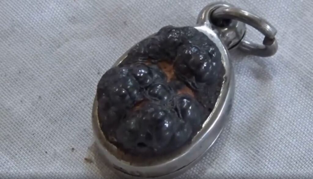 โดยเธอได้ของชิ้นนี้มาจากพ่อซึ่งมอบให้มากว่า 10 ปีแล้ว โดยพ่อบอกว่าเป็นก้อนเหล็กไหล ซึ่งเมื่อหลายปีก่อนพ่อของตนเป็นคนที่ชอบเข้าป่าเพื่อไปดูแลพระธุดงค์เป็นประจำ และวันหนึ่งได้ออกตามพระธุดงค์รูปหนึ่งที่ธุดงค์บนภูเขาแห่งหนึ่งในพื้นที่ จ.สตูล และได้เข้าไปในถ้ำ จึงพบก้อนประหลาดนี้ ขณะนั้นพระธุดงค์รูปดังกล่าวได้เก็บรักษาก้อนหินนี้ไว้เอง มีขนาดประมาณเท่ากำปั้น ต่อมาหลายปี พระธุดงค์รูปดังกล่าวก็ได้มาตั้งสำนักสงฆ์และพ่อเป็นคนคอยดูแลให้ความช่วยเหลือในหลายๆ ด้าน ท่านจึงตัดแบ่งหินก้อนนั้นให้กับพ่อ ต่อมาพ่อก็ได้นำมาตัดแบ่งให้กับลูกๆ ทั้งหมด 5 คน และตนก็ได้มา 1 ชิ้น