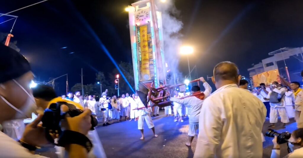 ตรัง 30 ก.ย. – ประชาชนจำนวนมากต่างสวมชุดขาว มาดูผู้มีจิตศรัทธาจุดประทัดแก้บน รวม 7 ล้านนัด โดยมีการปิดสี่แยกหอนาฬิกา จ.ตรัง ใช้ที่นั่งร้าน 4 ทิศ ขึ้นพร้อมกันรอบละ 8 ชุด ใช้เวลา 2 ชั่วโมงแล้วเสร็จ