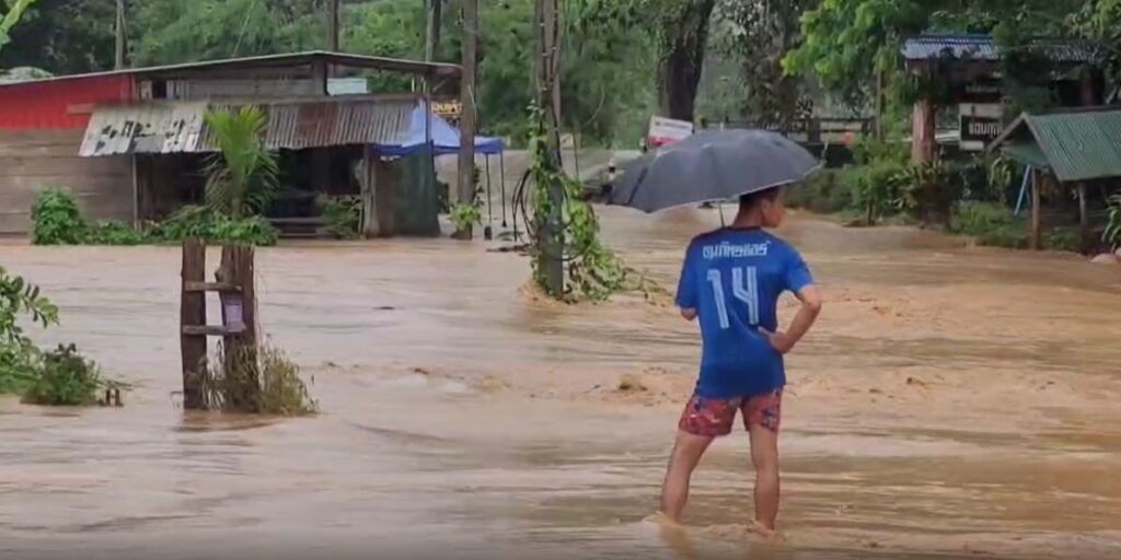 ตาก 30 ก.ย. – ฝนตกหนักบนภูเขา ที่ อ.แม่สอด เกิดน้ำป่าทะลักเข้าท่วมฉับพลันในหมู่บ้านแม่ละเมา ถนนทางเข้า-ออกหมู่บ้านถูกน้ำป่าตัดขาด สัญจรไม่ได้ เร่งอพยพคนและสิ่งของหนีน้ำป่าชุลมุน คาดท่วมหนักในรอบ 10 ปี