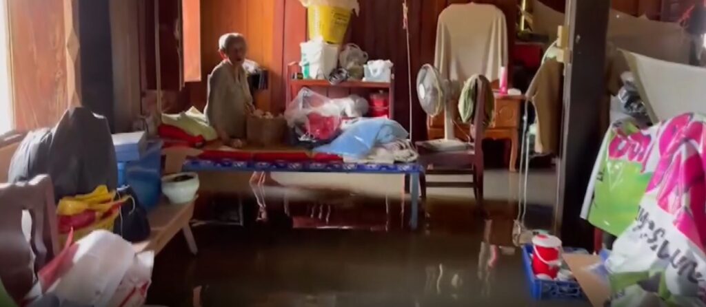 30 ก.ย. – น้ำป่าจากภูเขาทะลักเข้าท่วมหมู่บ้านบ้านแม่ละเมาสามัคคี อ.แม่สอด จ.ตาก น้ำเชี่ยวสีแดงขุ่น พัดสิ่งของลอยไปกับน้ำ ชาวบ้านเก็บของแทบไม่ทัน เศษซากไม้ลอยเกลื่อน ส่วนยายวัย 93 ที่อ่างทอง ห่วงบ้าน น้ำท่วมถึงชั้น 2 ต่อนั่งร้านหนีน้ำ