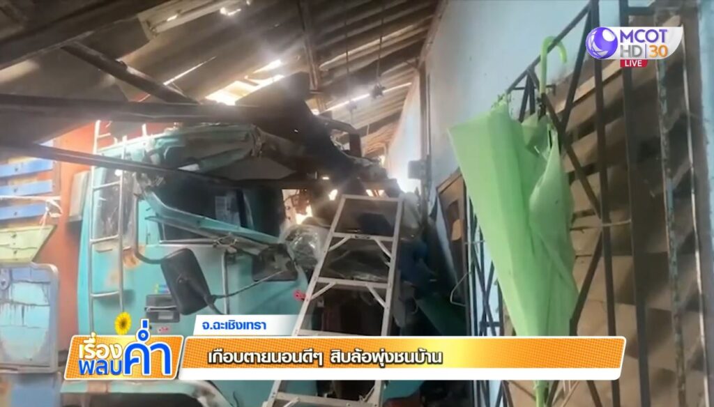 ฉะเชิงเทรา 17 ต.ค. – หญิงวัย 45 ปี กำลังนอนอยู่ในห้องเกือบตายไม่รู้ตัว เมื่อรถสิบล้อบรรทุกขยะ หักหลบรถด้านหน้า ก่อนจะพุ่งเข้ามาชนห้องที่ตนนอนอยู่จนทะลุกำแพงพัง โชคดีที่รถหยุดอยู่แค่นั้น หากเลยมาอีกนิดคงจะทับจนเสียชีวิต ขณะที่ภาพวงจรปิดจับภาพขณะรถสิบล้อกำลังหักหลบ
