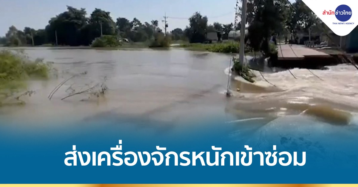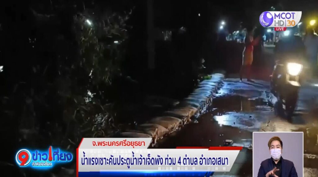 พระนครศรีอยุธยา 18 ต.ค. – กระแสน้ำแรงจากแม่น้ำน้อย ไหลเซาะคันประตูน้ำเจ้าเจ็ด ที่เป็นถนน 6 เมตร พังขาด น้ำไหลเข้าชุมชน 4 ตำบล ใน อ.เสนา จ.พระนครศรีอยุธยา ด้านผู้ว่าฯ พระนครศรีอยุธยา เร่งประสานกรมชลประทานส่งเครื่องจักรหนักเข้าซ่อม