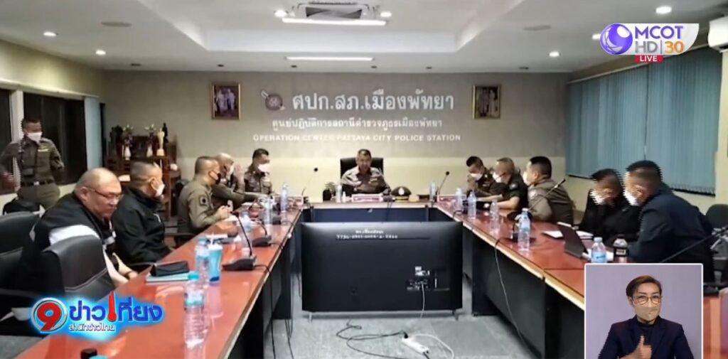 ต่อมาช่วงค่ำ ที่ สภ.เมืองพัทยา พล.ต.อ.สุรเชษฐ์ หักพาล รอง.ผบ.ตร. ได้เดินทางด้วย เฮลิคอปเตอร์ ของสำนักงานตำรวจแห่งชาติ เดินทางมาติดตามคดีนี้ด้วยตนเอง โดยมี พล.ต.ต.กิตติ์ธเนศ ธนนันท์ทวีสิน ผบก.ภ.จว.ชลบุรี และ พ.ต.อ.กุลชาต กุลชัย ผกก.เมืองพัทยา รายงานสรุปคดี โดยมีการประชุมหารือกันประมาณ ครึ่งชั่วโมง ก่อนที่ พล.ต.อ.สุรเชษฐ์ จะออกมาเปิดเผยว่าในคดีนี้ถือว่ากลุ่มผู้ก่อเหตุลงมืออย่างอุกอาจ ใจกลางเมืองพัทยา สร้างความตกใจให้กับนักท่องเที่ยวทั้งชาวไทยและชาวต่างชาติ โดย ผบ.ตร. ได้มีการกำชับให้ตำรวจในพื้นที่ ภ.จว.ชลบุรี เร่งติดตามจับกุมกลุ่มคนร้ายมาดำเนินคดีให้ได้ทั้งหมด อีกทั้งต้องขอชมเชย ตำรวจในพื้นที่ที่สามารถทำงานได้อย่างรวดเร็ว โดยไม่กี่ชั่วโมง ก็สามารถพิสูจน์ทราบว่าคนร้ายคือใคร จนสามารถออกหมายจับได้แล้ว 1 คน ส่วนผู้ก่อเหตุรายอื่นเชื่อว่าน่าจะได้ตัวในเร็วๆ นี้ ส่วนผู้เสียหายในคดีนี้มีทั้งหมด 4 คน สอบปากคำพยานไปแล้ว 8 ปาก ส่วนสาเหตุยังไม่ขอเปิดเผย และลงรายละเอียดลึก เนื่องจากเกรงว่าจะเสียรูปคดี โดยจะขอแถลงข่าวให้ทราบอีกครั้งด้วยตัวเองในวันที่สามารถจับกุมผู้ที่ก่อเหตุได้ทั้งหมด และเชื่อว่าจะได้ตัวกลุ่มผู้ที่ก่อเหตุได้เร็วๆ วันนี้