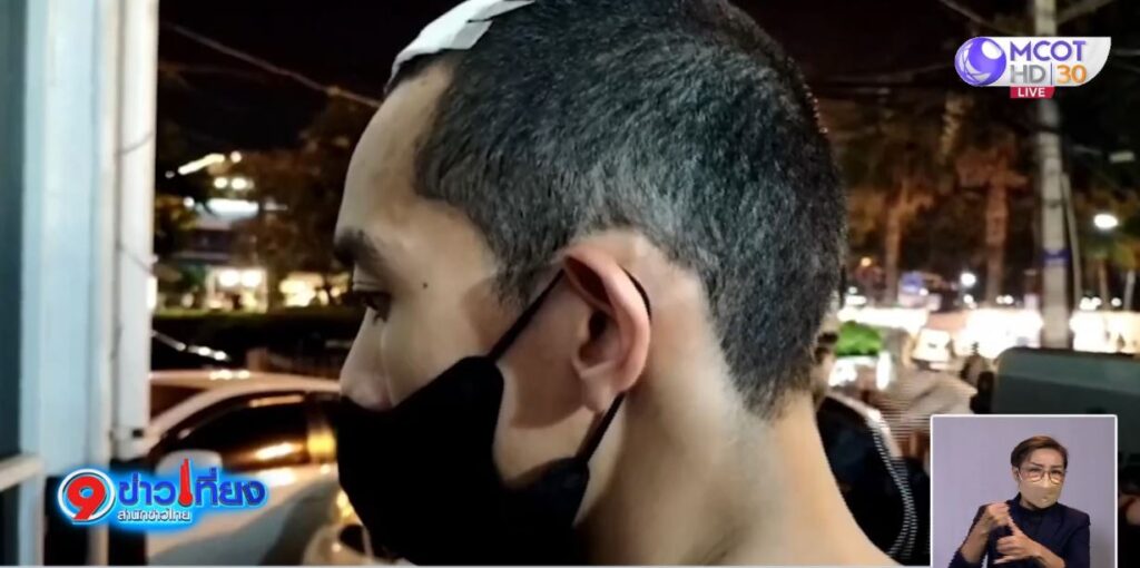 ผู้สื่อข่าว ได้พูดคุยกับนายปริญญา รินทร์อำภา อายุ 22 ปี หรือเจมส์ และ นายวรวิทย์ สระทองอ่อน อายุ 22 ปี หรือเก่ง ผู้ได้รับบาดเจ็บศีรษะแตก จากการถูกอาวุธปืนตบ ยังให้การยืนยันว่า ไม่เคยรู้จักกับกลุ่มที่ก่อเหตุมาก่อน จึงไม่ทราบว่า กลุ่มคนร้ายมาก่อเหตุเพราะสาเหตุใด ส่วนที่ถูกอาวุธปืนตบ คนร้ายพยายามจะขู่ให้บอกที่ซ่อนตัวของเพื่อนในกลุ่มที่ชื่อ มิ้นท์ เท่านั้น นอกจากนี้ ผู้สื่อข่าวได้มีโอกาสพูดคุยกับนายมิ้นท์ อายุ 23 ปี ซึ่งเป็นคนที่ถูกกลุ่มผู้ก่อเหตุพยายามตามหา โดยให้พูดคุยกับผู้สื่อข่าวสั้นๆ ว่า “ผมรู้ทุกเรื่อง ตอนเกิดเหตุผมวิ่งหนีปีนกำแพงออกไปทางด้านหลังก่อน ทำให้เพื่อนในกลุ่มซวยแทน” หลังพูดจบก็เดินเข้าไปในห้องสืบสวนทันที. -สำนักข่าวไทย