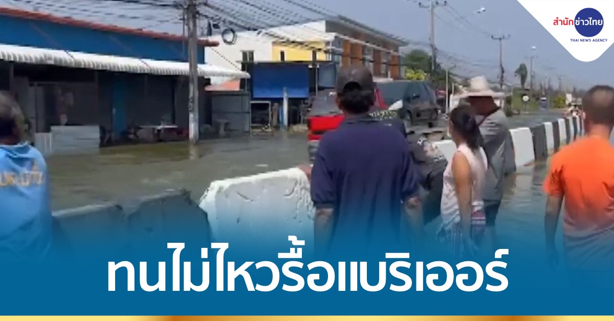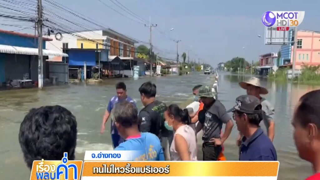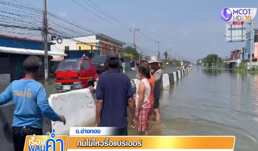 อ่างทอง 20 ต.ค.- ชาวบ้านอ่างทองสุดทนน้ำท่วม รวมตัวพังแนวแบริเออร์กั้นน้ำกลางถนน หลังน้ำล้นท่วมหนัก โวยไม่ใช่ที่กักน้ำหลังท่วมสูงแทบมิดหัว