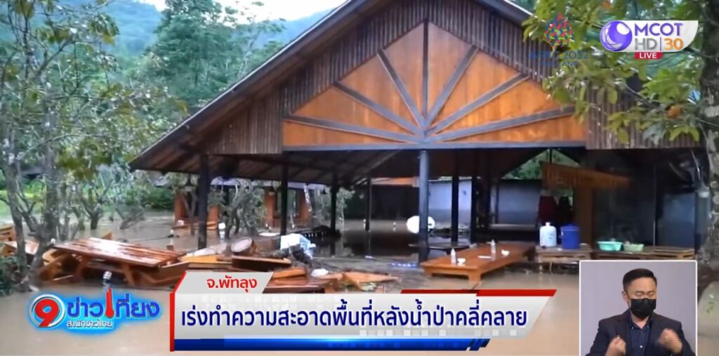 พัทลุง 7 พ.ย. – เจ้าหน้าที่และชาวบ้านเร่งสำรวจความเสียหาย ล้างทำความสะอาดคราบโคลนที่มากับน้ำป่า หลังสถานการณ์น้ำป่าคลี่คลาย