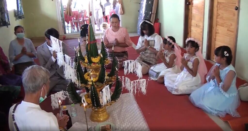 อุบลราชธานี 8 พ.ย. – คู่บ่าวสาว จ.อุบลราชธานี จูงมือเข้าพิธีมงคลสมรสท่ามกลางบ้านที่ถูกน้ำท่วมล้อมรอบ ถนนและบ้านเรือนในชุมชนส่วนหนึ่งยังมีน้ำท่วมขัง บรรดาแขกเหรื่อต้องนั่งเรือฝ่ากระแสน้ำมาร่วมแสดงความยินดี บางคนบอกอยู่มากว่า 50 ปี เพิ่งเคยนั่งเรือฝ่าน้ำเชี่ยวมางานแต่ง