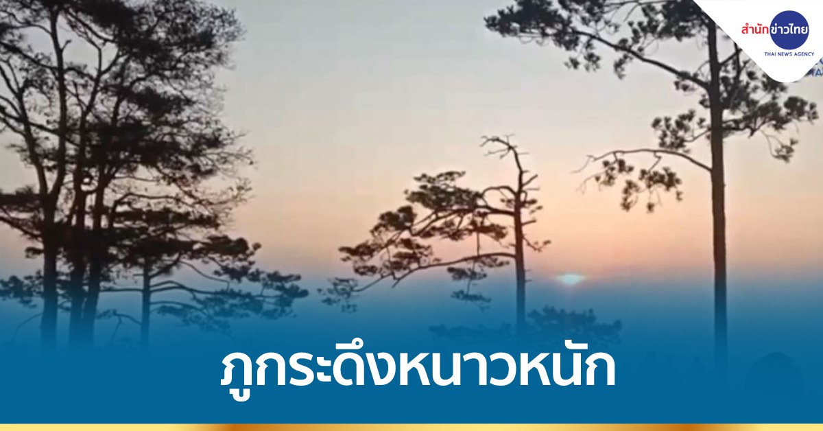 ผู้สื่อข่าวรายงานสภาพอากาศในพื้นที่จังหวัดเลย ยังคงหนาวเย็นลงอย่างต่อเนื่อง ทำให้ตามแหล่งท่องเที่ยวสำคัญบนยอดภู มีนักท่องเที่ยวหลั่งไหลเดินทางมาสัมผัสอากาศที่หนาวเย็นกันอย่างคึกคัก เฉพาะที่อุทยานแห่งชาติภูกระดึง เช้าวันนี้อุณหภูมิแตะเลขตัวเดียววันแรกในฤดูหนาวปีนี้ โดยที่ผานกแอ่น จุดชมพระอาทิตย์ขึ้นและทะเลหมอก ที่สวยงามที่สุดของอุทยานฯ ภูกระดึง นักท่องเที่ยวต่างเดินทางจากที่พักตั้งแต่เช้ามืดมาสัมผัสอากาศที่ผานกแอ่น รอพระอาทิตย์ขึ้น และชมทะเลหมอก ซึ่งเช้าวันนี้งดงามมากขาวมาก ท่ามกลางอุณหภูมิที่หนาวเหน็บ จนต้องสวมหมวก ผ้าพันคอ เสื้อกันหนาว เพื่อความอบอุ่นของร่างกายและสู้กับอากาศที่หนาวเย็น. -สำนักข่าวไทย