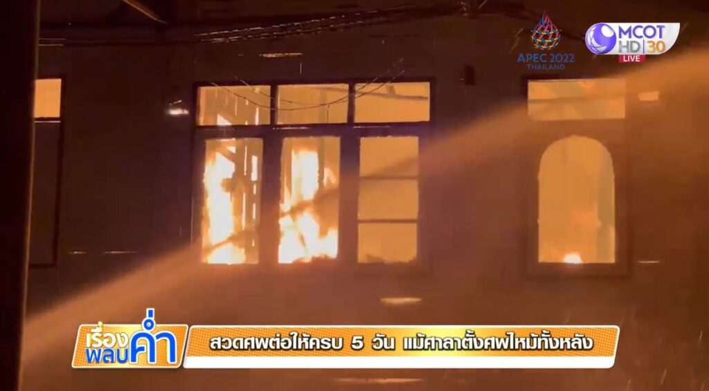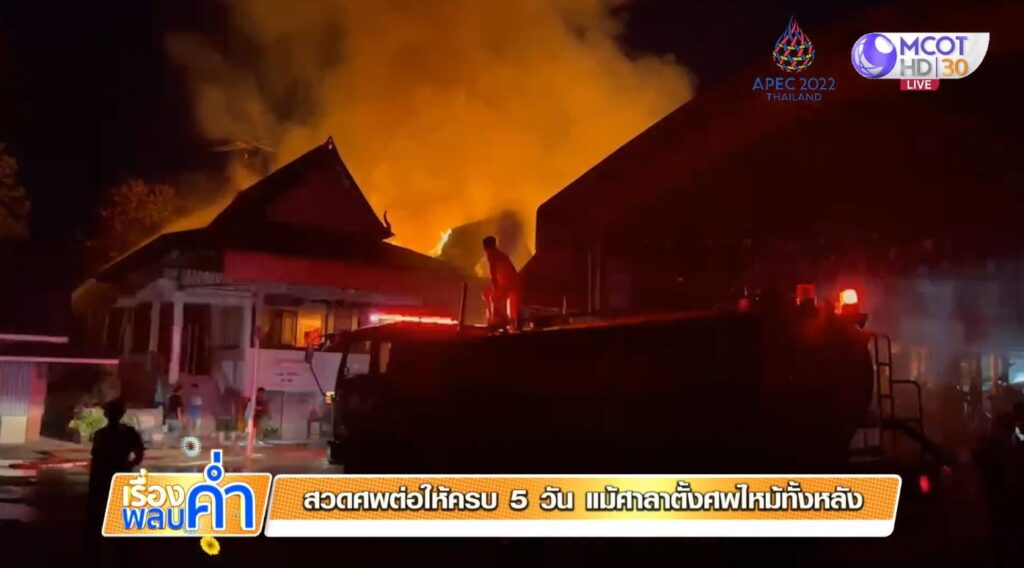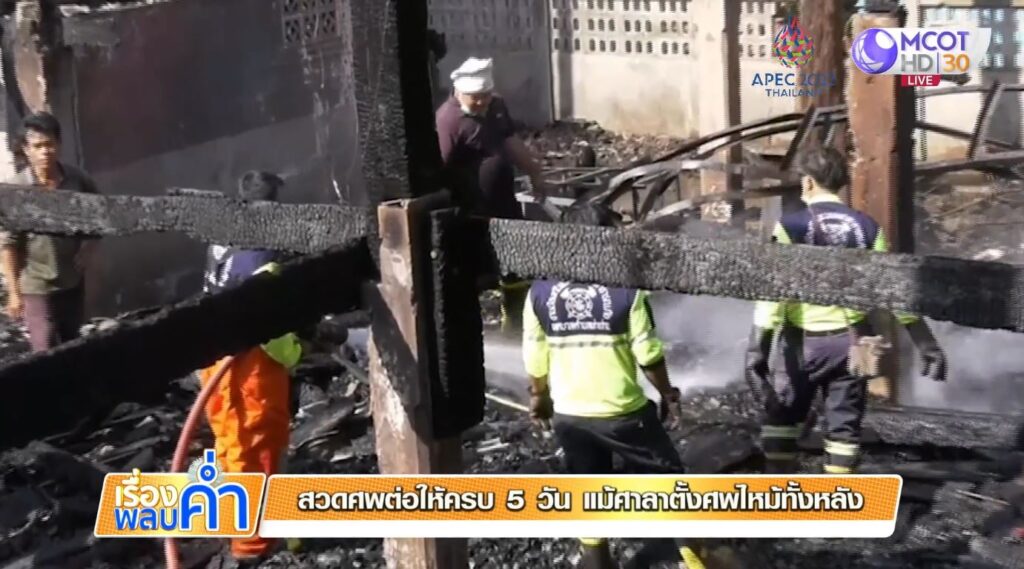 ส่วนศพของนางกชพร ที่ตั้งบำเพ็ญกุศลอยู่ภายในโลงเย็น ถูกไฟไหม้จนศพได้รับความเสียหายบางส่วน แต่ยังคงสภาพเหลือไว้ให้สามารถบำเพ็ญกุศลต่อไปได้ ซึ่งทางเจ้าอาวาสได้ให้สวดพระอภิธรรมจนครบ 5 วัน ตามที่ทางญาติตั้งใจเอาไว้ โดยทางวัดได้นำโลงเย็นโลงที่ 2 ของวัดทำบรรจุศพใหม่ และเตรียมจัดสถานที่ด้านหน้าของศาลาการเปรียญที่ถูกไฟไหม้ เพื่อประกอบพิธีทางศาสนาต่อไป. -สำนักข่าวไทย