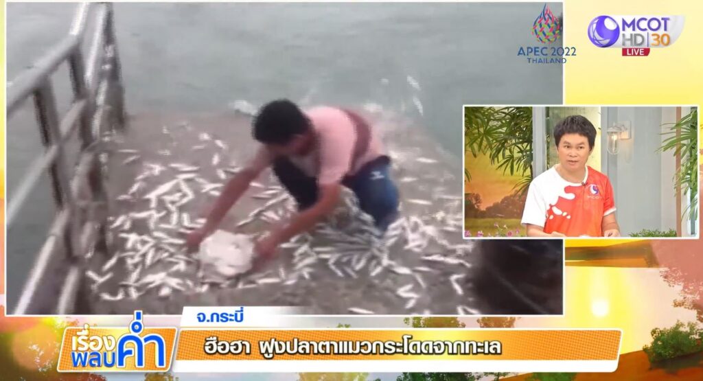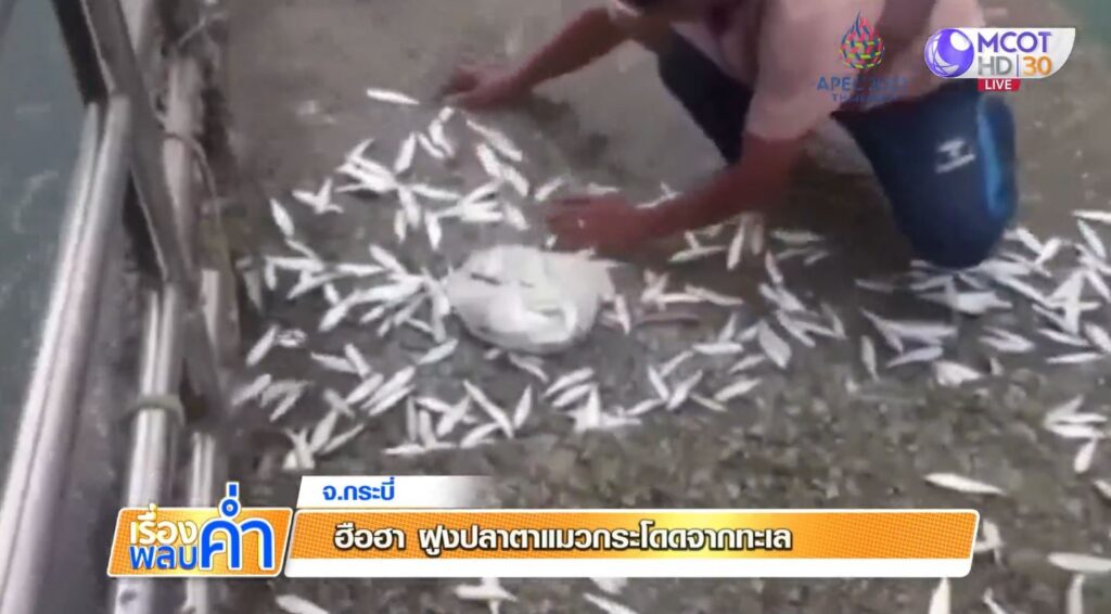 กระบี่ 11 พ.ย. – ที่ จ.กระบี่ ฝูงปลาตาแมวจำนวนมากกระโดดจากทะเลขึ้นสะพานทางเดิน จนผู้ที่ยืนดูอยู่บนสะพานทึ่งในปรากฏการณ์นี้ เบื้องต้นคาดอาจเป็นไปได้ว่าปลาดังกล่าวน่าจะเข้ามาวางไข่