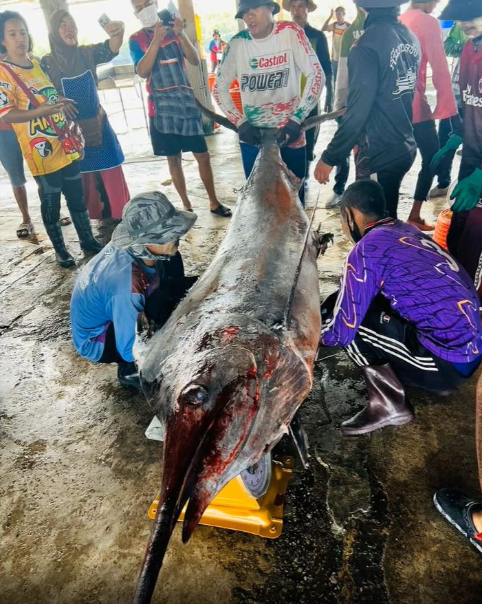 นายณัฐดนัย ประมงค์ เจ้าของเรือ เล่าว่าขณะที่ตนพร้อมด้วยลูกเรือ ได้ออกทำประมงอวนล้อมจับที่บริเวณด้านหลังเกาะพีพี ต.อ่าวนาง เมื่อคืนเวลา 22.30 น. ขณะลากอวนขึ้นมา ปรากฏว่ามีปลากระโทงเทงขนาดใหญ่ติดอวนขึ้นมา สร้างความตื่นเต้นแก่ลูกเรือ จึงได้รีบสาวอวนขึ้นเรือทันที และนำกลับขึ้นฝั่งในช่วงเช้า และนำปลากระโทงเทงตัวดังกล่าว มีความยาวประมาณ 3 เมตรเศษ ไปชั่งน้ำหนักได้กว่า 200 กก. ซึ่งราคาขายอยู่ที่ กก.ละ 60 บาท มูลค่าประมาณ กว่า 12,000 บาท