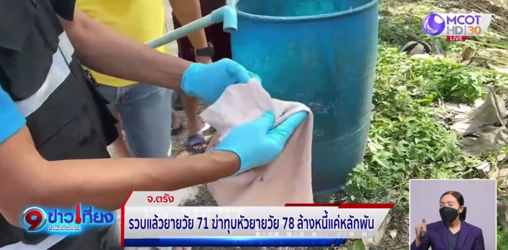 ตรัง 17 ม.ค. – รวบแล้วยายวัย 71 ปี ฆ่าทุบหัว ฟันใบหน้าของยายวัย 78 ปี สารภาพหวังแค่ขู่ เพราะแค้นที่ผู้ตายประกาศให้เพื่อนบ้านรู้ว่าตนยืมเงินไปหลายครั้งแล้วไม่เคยได้คืน