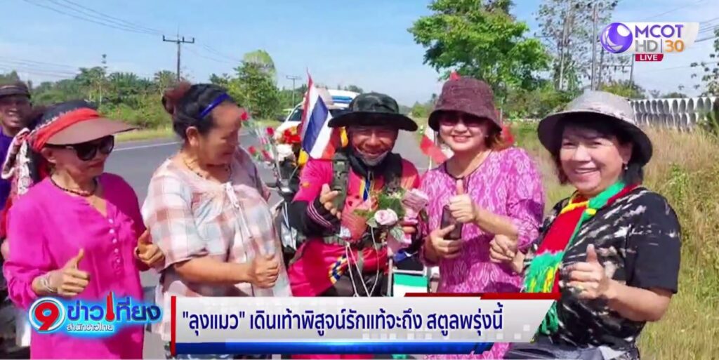 13 ก.พ. – ความรักของลุงแมว หนุ่มยโสธรวัย 53 ปี ที่ต้องการพิสูจน์รักแท้ด้วยการยอมเดินเท้าจาก จ.นครนายก มุ่งหน้าไปสู่ขอแฟนสาวที่รู้จักกันทางแอปฯ ให้ทันวันวาเลนไทน์ ใกล้เป็นจริงแล้ว เหลือเพียง 60 กิโลเมตร จะถึง อ.ทุ่งหว้า จ.สตูล หลังเริ่มเดินมาจาก จ.นครนายก เมื่อวันที่ 14 ม.ค.ที่ผ่านมา