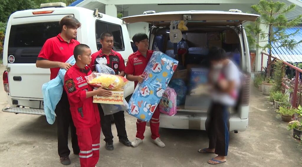 เจ้าหน้าที่กู้ภัยนพรัตน์เชียงใหม่ เข้าไปให้การช่วยเหลือเบื้องต้น ทั้งหาข้าวให้กิน และช่วยกันอาบน้ำให้เด็กหญิงวัย 1 ขวบ ซึ่งไม่ได้อาบน้ำมาหลายวัน