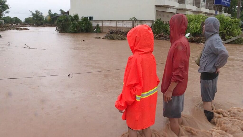 เชียงราย 14 ก.ย. – ชาวบ้านเมืองงิม หมู่ 4 ต.ริมกก อ.เมือง จ.เชียงราย เดือดร้อนหนัก ถูกกระแสน้ำกกพัดบ้านหายไปทั้งหลัง เหลือเพียงตู้แช่ไว้ให้ดูต่างหน้า ขณะที่ ปภ. ยังคงจัดน้ำดื่มและถุงยังชีพ กระจายไปยังจุดต่างๆ ที่มีการร้องขอความช่วยเหลือ