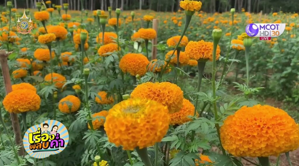 ดอกดาวเรืองที่เห็นบานอยู่ทั้งหมดนี้ ถูกจองจนเต็มแล้ว เกษตรกรต้องเร่งตัดดอกขายให้ได้วันละ 7,000-8,000 ดอก สร้างรายได้วันละ 4,000-5,000 บาทต่อวัน ดาวเรือง 1 ต้น ตัดดอกขายได้ 6-8 มีด หรือประมาณ 1 เดือนกว่า ส่วนรุ่นต่อไปกำหนดตัดดอกมีดแรก ช่วงปีใหม่อีกกว่า 6,500 ต้น โดยรับยอดจากการทำตลาดออนไลน์ล่วงหน้า ยอดจองยาวตลอด 3-4 เดือนนี้ ส่วนดอกเล็กนำไปร้อยพวงมาลัย ข้อดีของดอกดาวเรือง ขายได้ทุกขนาด เพราะการใช้งานแตกต่างกัน