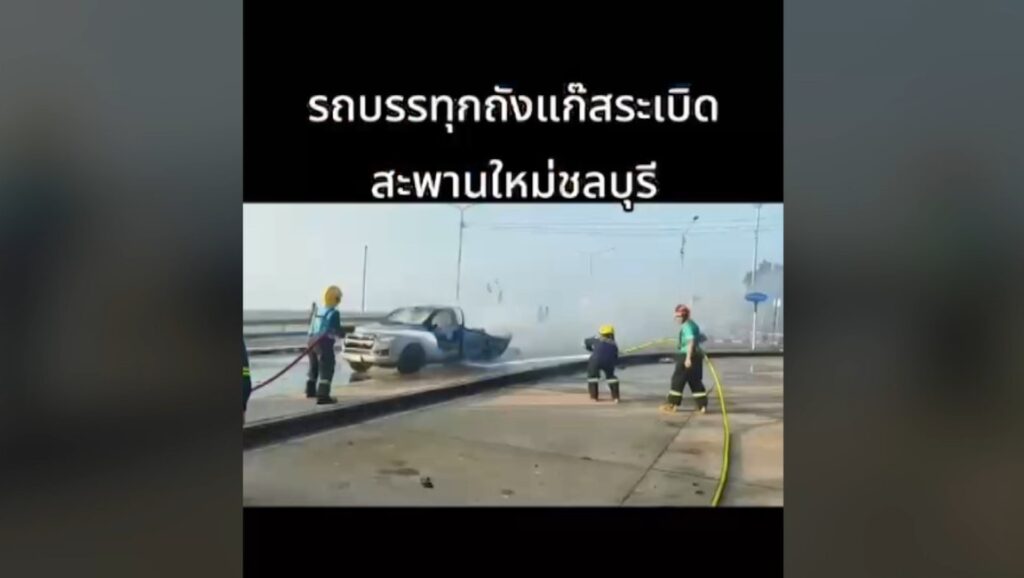ชลบุรี 18 พ.ย. – รถกระบะขนแก๊สระเบิดดังสนั่นกลางสะพานชลมารควิถี จ.ชลบุรี คนขับถูกไฟคลอกได้รับบาดเจ็บ เจ้าหน้าที่กู้ภัยเร่งนำตัวส่งโรงพยาบาลชลบุรี