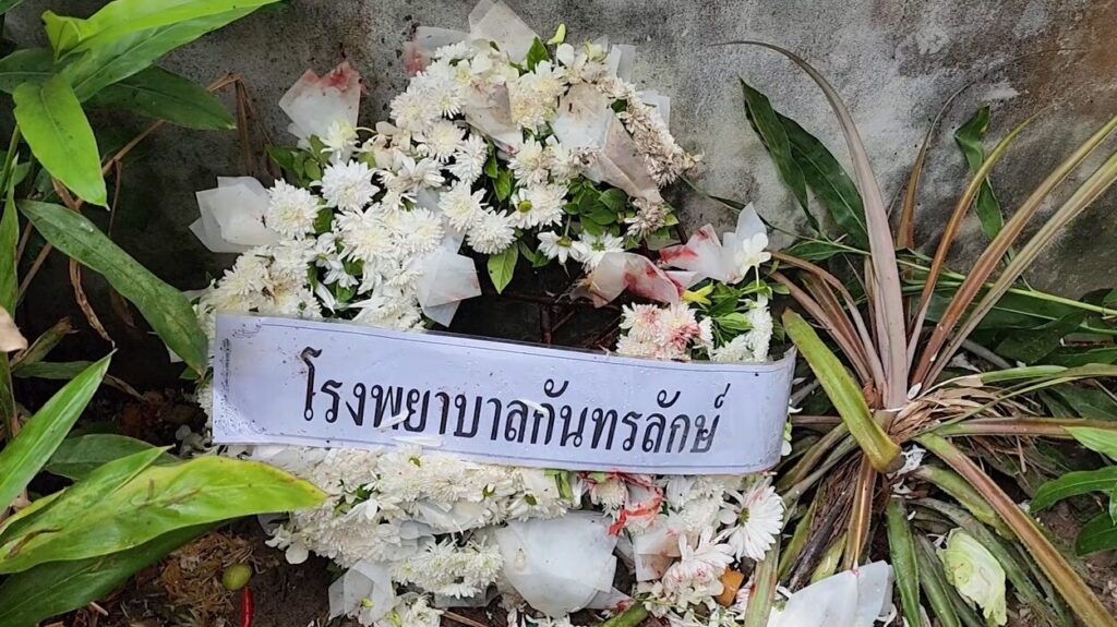ทั้งนี้ ญาติได้พาผู้สื่อข่าวไปดูพวงหรีดของโรงพยาบาล ที่เอาไปทิ้งไว้ด้านหลังบ้าน เนื่องจากไม่พอใจกับกระทำของโรงพยาบาล และยังรับไม่ได้ จึงตั้งใจจะไม่รับทุกอยากที่ทางโรงพยาบาลนำมามอบให้เด็ดขาด
