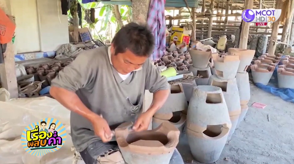 สองสามีภรรยา เล่าว่า ทำเตาอั้งโล่มานาน 30 ปีแล้ว โดยใช้เวลาว่างหลังจากการทำนา ผลิตเตาอั้งโล่ หารายได้เสริม ปีนี้ภาคอีสานหนาวเย็นกว่าทุกปี มียอดสั่งซื้อเพิ่มขึ้น จนต้องเร่งผลิต แต่ก็ทำได้สูงสุดแค่วันละ 20 ลูก ยังไม่พอกับความต้องการ เพราะทำกันอยู่สองคน