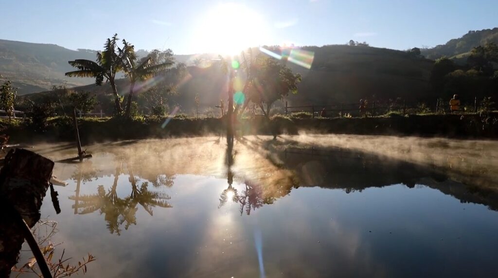 ที่ จ.พิษณุโลก เช้าวันนี้อุณหภูมิบนยอดหญ้า 0 ถึงลบ 2 องศาฯ ทำให้นักท่องเที่ยวที่มากางเต็นท์ชมธรรมชาติ บริเวณหมู่บ้านท่องเที่ยวชมซากุระ บ้านร่องกล้า ที่อยู่กลางอุทยานแห่งชาติภูหินร่องกล้า นอกจากจะได้ถ่ายรูปแม่คะนิ้งเกาะอยู่เต็มยอดหญ้า โซฟา หลังคารถ และหลังคาเต็นท์ ยังได้สัมผัสภาพความงามของธรรมชาติที่จะมีไอน้ำโผล่ขึ้นมาจากลำธารหลังพระอาทิตย์โผล่พ้นสันเขา