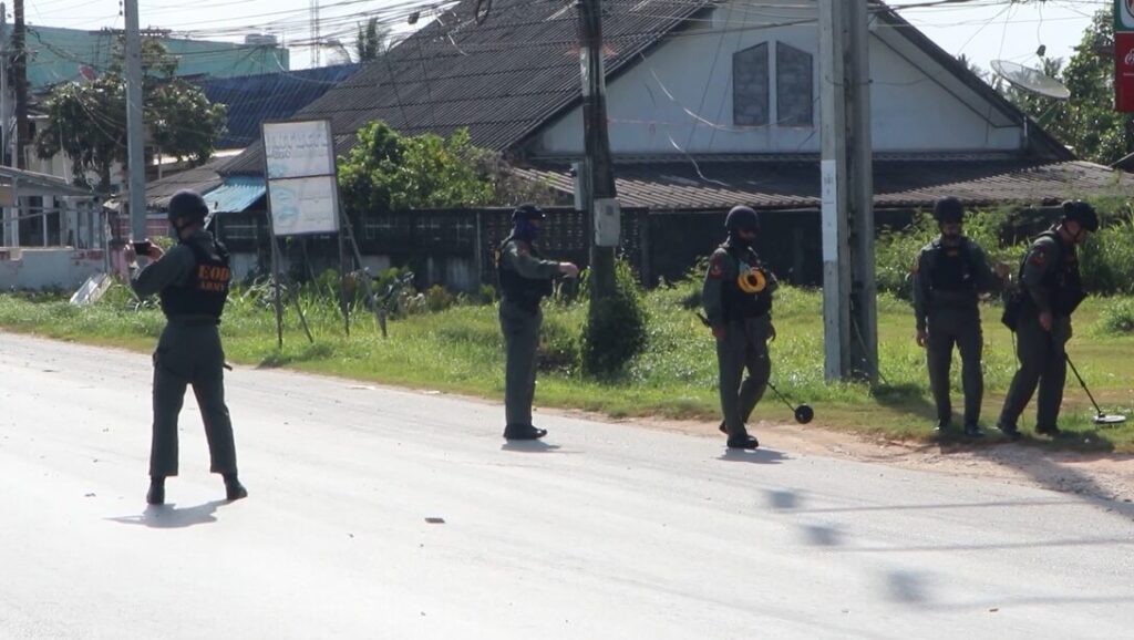 หลังเกิดเหตุ เจ้าหน้าที่นำกำลังเข้าปิดกั้นจุดเกิดเหตุ เพื่อความปลอดภัย ก่อนนำกำลังเจ้าหน้าที่เก็บกู้วัตถุระเบิด และหน่วยที่เกี่ยวข้องเข้าตรวจสอบ พบจุดเกิดเหตุอยู่ บริเวณป้อม ชรบ. ริมถนน ซึ่งเป็นชุดของ ชรบ. ม.8 ต.บ่อทอง แรงระเบิดทำให้ป้อมได้รับความเสียหาย นอกจานี้ยังพบรถจักรยานยนต์ ของตำรวจ ประชาชน และรถยนต์ของชาวบ้าน เสียหายหลายคัน รวมถึงบ้านเรือนชาวบ้านที่อยู่บริเวณใกล้ เคียงได้รับความเสียหายเช่นกัน