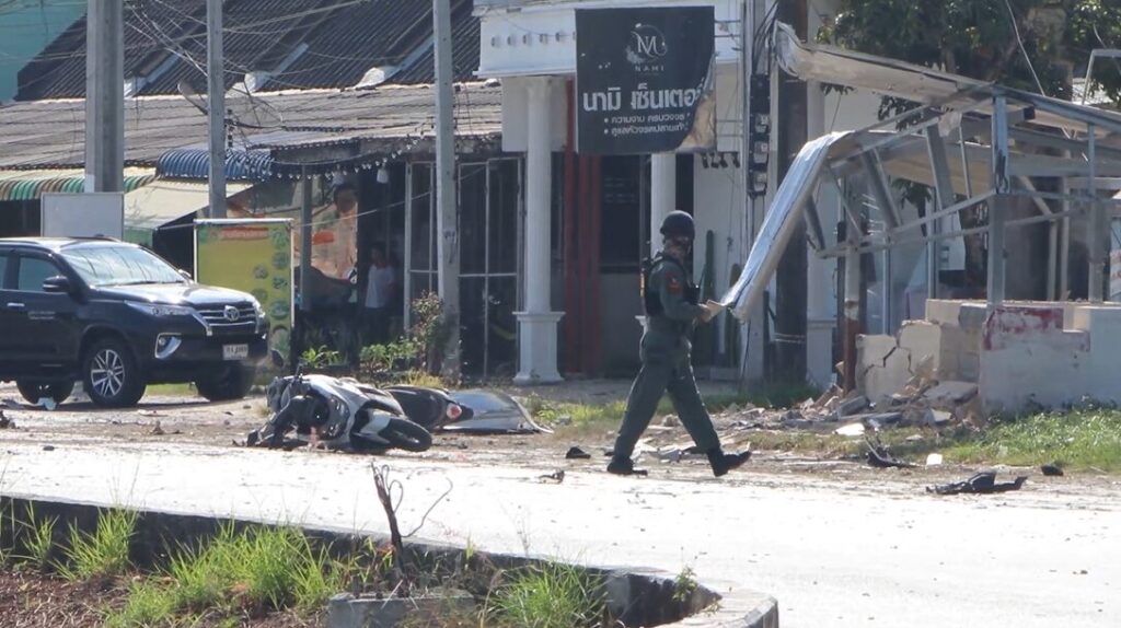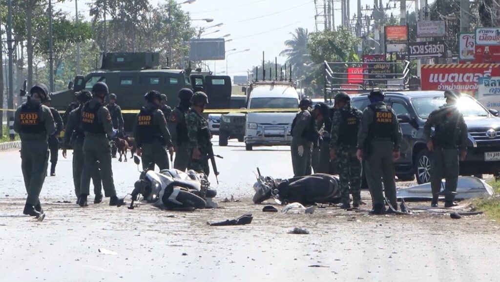 ปัตตานี 7 ก.พ. – เหตุระเบิดชุดคุ้มครองครู บริเวณแยกดอนยาง ริมถนน 43 พื้นที่หนองจิก จ.ปัตตานี ทำให้ตำรวจ เสียชีวิต 1 นาย บาดเจ็บ 4 นาย