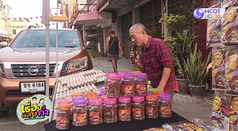 พิษณุโลก 21 ก.พ. – ดาบหมู ตำรวจสุดขยัน ขายหมูยออุบลฯ อาชีพเสริม ทุกเช้าตั้งแต่ 05.30-08.00 น. ริมถนนหน้าตลาดใต้ จ.พิษณุโลก ลีลาการขายก็ไม่ธรรมดา ร้องเพลงลูกทุ่งเรียกลูกค้า อารมณ์ดี