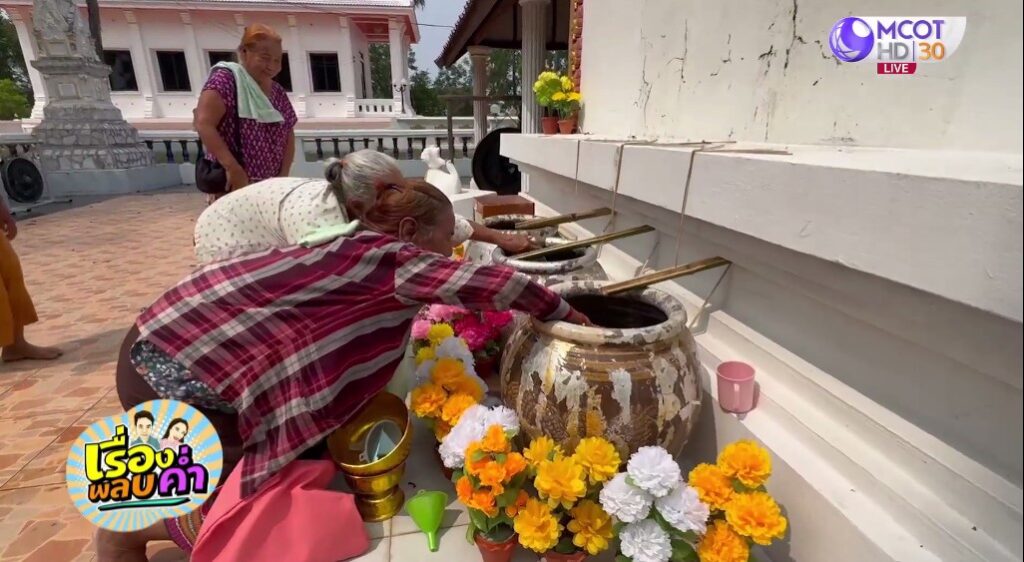 มหาสารคาม 2 เม.ย. – แปลกแต่จริง น้ำผุดไหลออกมาจากเจดีย์ธาตุดำ วัดรังสี อ.วาปีปทุม จ.มหาสารคาม ชาวบ้านแห่ขอโชคลาภ รองน้ำนำกลับไปบ้าน เชื่อหลวงปู่มาให้พร อยู่เย็นเป็นสุข