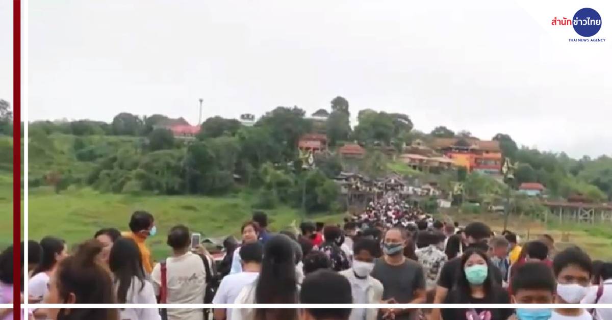 บรรยากาศท่องเที่ยว จ.กาญจนบุรี ช่วงวันหยุดยาว ถนนทุกสายเต็มไปด้วยรถของนักท่องเที่ยวมุ่งหน้าไปอำเภอที่มีแหล่งท่องเที่ยว ตั้งแต่สะพานข้ามแม่น้ำแคว เขตอำเภอเมือง ไทรโยค ศรีสวัสดิ์ ทองผาภูมิ โดยเฉพาะ อ.สังขละบุรี บริเวณบ้านวังกะ ซึ่งเป็นชุมชนชาวมอญที่ได้รับความนิยมจากนักท่องเที่ยว วัดวังก์วิเวการาม ต่อเนื่องไปจนถึงสะพานมอญที่มีสายหมอกบางๆ ท่ามกลางอากาศเย็นสบาย ทั้งที่พักโฮมสเตย์ในชุมชนเต็ม 100% นักท่องเที่ยวมากจนที่จอดรถไม่เพียงพอ ต้องวนหาที่จอด ท่ามกลางเจ้าหน้าที่ที่เกี่ยวข้องทั้งตำรวจ ทหาร สาธารณสุข ผู้นำชุมชน ร่วมอำนวยความสะดวกจราจร และรณรงค์ให้นักท่องเที่ยวสวมหน้ากากอนามัย