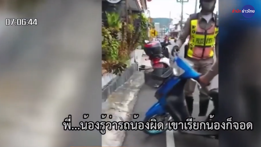 นี่เป็นคลิปที่มีการเผยแพร่ในสังคมออนไลน์ ขณะหญิงสาวคนหนึ่งกำลังร้องไห้ อ้อนวอนขอรถจักรยานยนต์คืนจากตำรวจ สภ.เมืองสงขลา หลังเธอขี่รถจักรยานยนต์ไม่สวมหมวกกันน็อก จึงถูกจับบริเวณสี่แยกวัดเลียบ จ.สงขลา แต่ไม่มีเงินจ่ายค่าปรับ จึงร้องขอรถคืน อ้างว่าจะไปรับลูกกับแม่ และจะไปเสียค่าปรับทีหลัง แต่ตำรวจจราจรไม่ยอม และได้ยกรถจักรยานยนต์ขึ้นรถตำรวจพาไปโรงพัก จนกลายเป็นประเด็นทางสังคมออนไลน์ที่มีการวิจารณ์ถึงการทำงานของตำรวจ