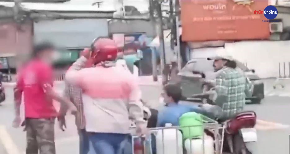 ผู้เห็นเหตุการณ์คนหนึ่งเล่าว่า ขับรถตามหลังมา เห็นรถพ่วงข้างคันดังกล่าวและจักรยานยนต์คู่กรณีเขม่นกัน ขับตีคู่แทบจะเบียดกัน ต่อมารถจักรยานยนต์เร่งแซงขึ้นหน้าและเบรกตามรถคันข้างหน้า แต่รถพ่วงข้างตามมาเบรกไม่ทัน พุ่งชนท้ายรถจักรยานยนต์ ก่อนจะไปจอดหน้าร้านอาหารและเกิดเหตุตามคลิป ส่วนกลุ่มคนร้ายน่าจะเป็นคนงานก่อสร้างไม่ไกลจากที่เกิดเหตุ