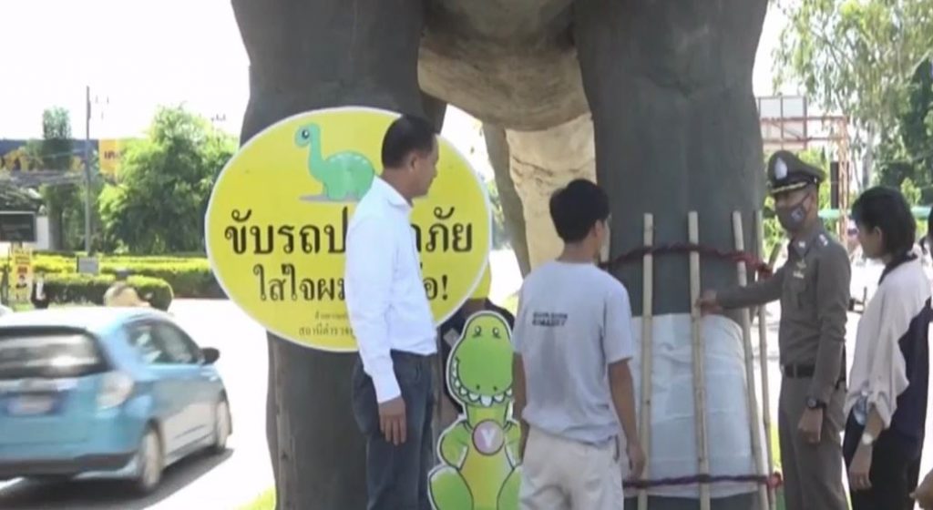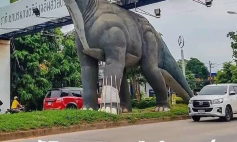 ภาพรูปปั้นไดโนเสาร์ขนาดใหญ่ใน จ.ขอนแก่น ถูกรถกระบะพุ่งชนจนขาหน้าข้างซ้ายหัก และได้รับการเข้าเฝือก กลายเป็นที่ชื่นชมในโลกโซเชียล ซึ่งล่าสุด หาตัวผู้คิดไอเดียที่น่ารักนี้ได้แล้ว คือ คุณเข็มชาติ สมใจวงษ์ ประธานกิตติมศักดิ์หอการค้าจังหวัดขอนแก่น