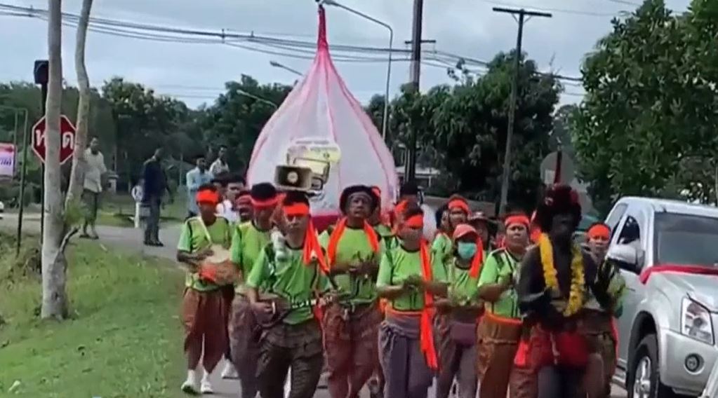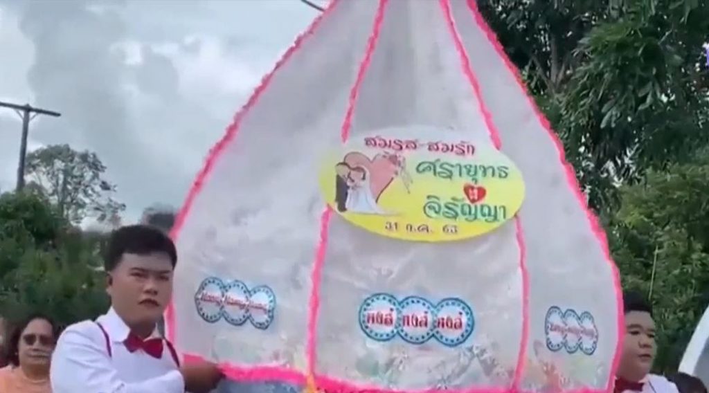 ตรัง 31 ก.ค.-ฤกษ์ดีแต่งงานในเดือน 9 เจ้าบ่าวยกขันหมากยักษ์ไปสู่ขอแฟนสาว ที่จังหวัดตรัง