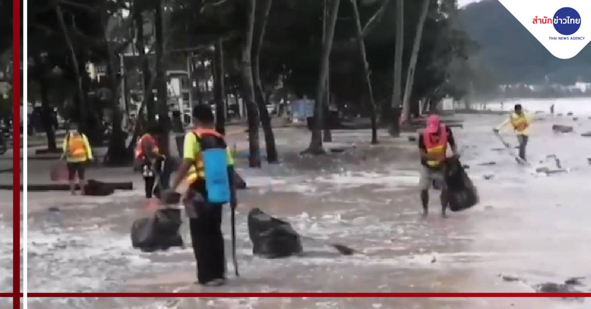 ภูเก็ต 3 ส.ค.-อิทธิพลจากพายุโซนร้อนซินลากู ส่งผลให้เกิดคลื่นลมแรงในทะเลฝั่งอันดามัน ได้พัดขยะจำนวนมากถูกมากองเต็มชายหาดต่างๆ ใน จ.ภูเก็ต อย่างที่ไม่เคยมีมาก่อน เจ้าหน้าที่ต้องเข้าเก็บกวาดเร่งด่วน
