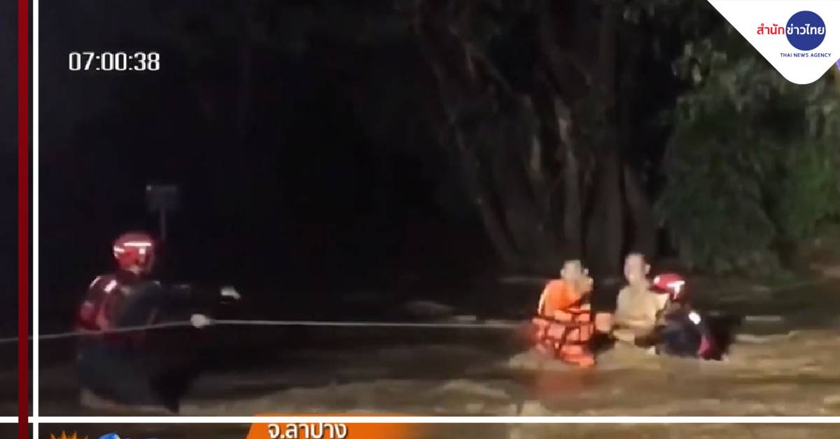 ภูมิภาค 4 ส.ค. -กู้ภัยโยงเชือกผูกกับต้นไม้ ช่วยชาวบ้าน 2 คน ติดกลางแม่น้ำวัง ต.ร่องเคาะ อ.วังเหนือ จ.ลำปาง ท่ามกลางกระแสน้ำไหลเชี่ยว มีชาวบ้านมามุงดูเหตุการณ์จำนวนมาก เจ้าหน้าที่ใช้เวลานานกว่า 2 ชั่วโมง ช่วยทั้งคู่ได้อย่างปลอดภัย