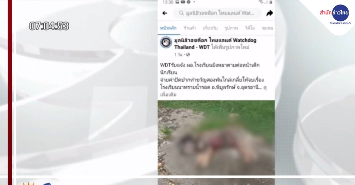 อุดรธานี 6 ส.ค. – เฟซบุ๊กมูลนิธิวอชด็อก ไทยแลนด์ เผยแพร่เรื่องราวและคลิปภาพโดยอ้างว่ารับแจ้งมี ผอ.โรงเรียนยิงสุนัขตายต่อหน้านักเรียน ก่อนจ่ายค่าปิดปากทำขวัญไกล่เกลี่ย 2,000 ให้จบเรื่อง ล่าสุด สพป.อุดรธานี เขต 3 สั่งตั้งคณะกรรมการตรวจสอบข้อเท็จจริงแล้ว