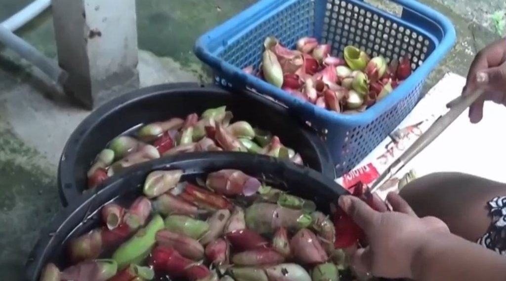 นางปรีดี หนูผัน และน.ส.วราพร หนูผัน สองแม่ลูก ยังยึดอาชีพทำขนมหม้อข้าวหม้อแกงลิงขาย ที่สวนพฤกษศาสตร์ทุ่งค่าย อ.ย่านตาขาว จ.ตรัง ซึ่งผืนป่ายังอุดมสมบูรณ์ โดยจะเก็บหม้อข้าวหม้อแกงลิง ซึ่งฤดูฝนจะขึ้นตามธรรมชาติเพื่อนำไปทำขนม “ข้าวเหนียวหม้อข้าวหม้อแกงลิง”