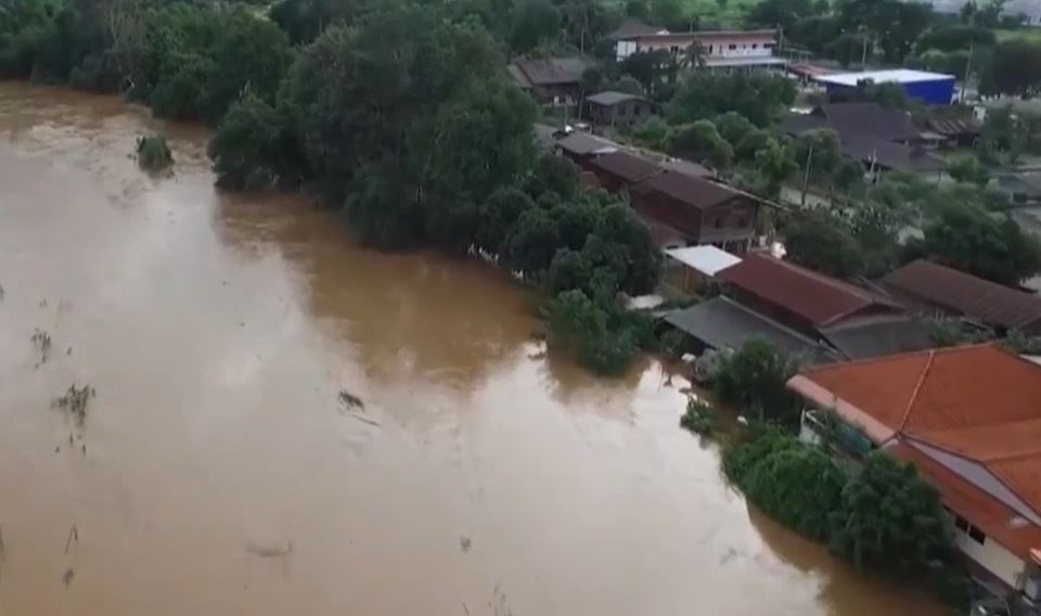 แม่น้ำลาวล้นตลิ่ง ไหลท่วมถนน บ้านเรือน และพื้นที่เกษตร โดยเฉพาะไร่ข้าวโพดและนาข้าวใน ต.บัวสลี อ.แม่ลาว และ ต.ป่าอ้อดอนชัย อ.เมือง จ.เชียงราย ก่อนไหลลงแม่น้ำกกอย่างต่อเนื่อง โดยระดับน้ำในแม่น้ำยังสูง สีแดงขุ่น และไหลเชี่ยวกราก บางจุดสูงกว่า 1 เมตร และยังเพิ่มระดับชั่วโมงละ 3-5 เซนติเมตร ขยายเป็นวงกว้าง ทำให้ชาวบ้านร่องขุ่น ต.ป่าอ้อดอนชัย ที่มีบ้านริมฝั่งแม่น้ำ ต้องเร่งขนย้ายข้าวของไปไว้บนที่สูง และจัดเวรยามเฝ้าสังเกตระดับน้ำอย่างใกล้ชิด ส่วนการไหลลงแม่น้ำกกของแม่น้ำลาวก็เป็นไปอย่างช้า ๆ คาดว่า ถ้าฝนไม่ตกเพิ่ม น้ำลาวจะไหลลงแม่น้ำกกและแม่น้ำโขงหมดภายใน 2-3 วันนี้