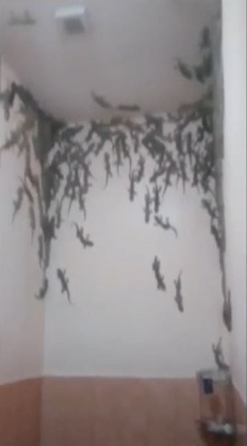 6 ส.ค.-ห้องน้ำสยองขวัญ “รังตุ๊กแก” ท้าให้เข้าไปส้วม 5 นาที กล้ามั้ย? นี่มันฟาร์มตุ๊กแกชัด ๆ ผู้ใช้แอปฯ TikTok ชื่อ @kycakra โพสต์คลิปห้องน้ำในบ้านหลังหนึ่ง เมื่อเดินเข้าไปถึงกับผงะกับสิ่งที่เห็น นั้นคือตุ๊กแกไม่ใช่แค่ตัวสองตัว มันเป็นร้อย ๆ ตัว เกาะอยู่บนผนังบนเพดานห้องน้ำเต็มไปหมด