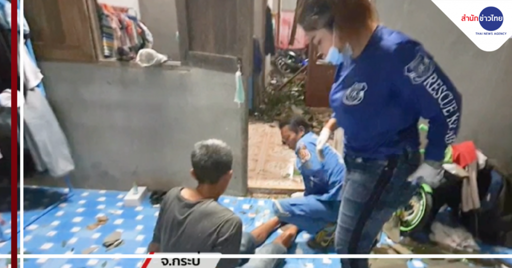 กระบี่ 9 ส.ค.-ต้นยูคาลิปตัสสูงกว่า 20 ม. ล้มทับบ้านเรือนประชาชนใน ต.ทับปริก อ.เมืองกระบี่ หลังฝนตกหนักติดต่อหลายวัน เจ้าของบ้านบาดเจ็บ 1 ราย