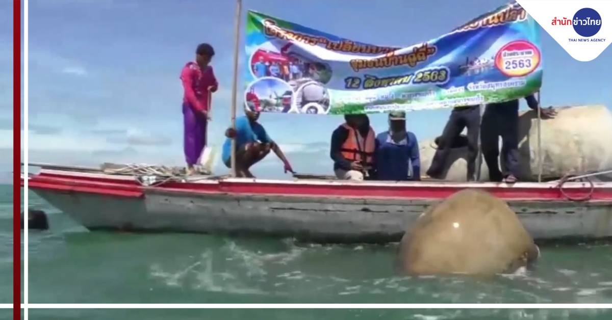 สมุทรสงคราม 12 ส.ค.- ชาวดอนหอยหลอด จ.สมุทรสงคราม จัดกิจกรรมทิ้งโอ่งกลางทะเล เปลี่ยนบ้านยุงให้เป็นบ้านปลา เพื่อถวายเป็นพระราชกุศลแด่สมเด็จพระนางเจ้าสิริกิติ์ พระบรมราชินีนาถ พระบรมราชชนนีพันปีหลวง เพิ่มปริมาณสัตว์น้ำ และสร้างการมีส่วนร่วมในการอนุรักษ์ทรัพยากรทางทะเล