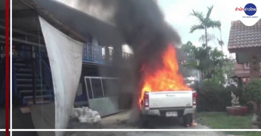 ชลบุรี 12 ส.ค.- สามีโมโหทะเลาะภรรยา ซื้อน้ำมันเบนซินมาราดเบาะรถกระบะ ภรรยารำคาญขี่จักรยานยนต์ออกจากบ้าน สามียิ่งโมโห ขับรถออกไปตาม ระหว่างนั้นจุดบุหรี่สูบไปด้วย ทำให้เกิดเพลิงไหม้ รถพังเสียหายทั้งคัน