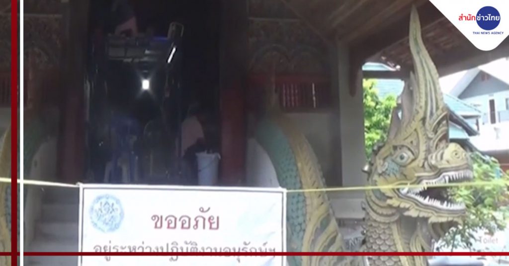 เชียงใหม่ 12 ส.ค.-คืบหน้าบูรณะบานประตูพระวิหาร วัดหมื่นล้าน เชียงใหม่ ล่าสุดเจ้าหน้าที่ยังคงทำงานหนัก เพื่อกู้ลวดลายโบราณอายุกว่า 100 ปี หลังถูกทาสีทับ-ทุบผนังจนไม่เหลือร่องรอยเดิม