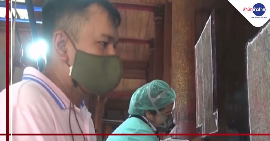 นางโสพิศ ปัญญาขัน นักวิทยาศาสตร์ ชำนาญการ กลุ่มงานอนุรักษ์ กรมศิลปากร กล่าวว่า ความยาก อยู่ที่ต้องใช้สำลีชุบน้ำยาเคมี เช็คสีน้ำมันชั้นนอก และใช้ปลายคมมีด ขูดไฟเบอร์ชั้นในออก และต้องใช้ความระมัดระวังอย่างมาก ไม่ให้ถูกลวดลายของเดิม เป็นงานละเอียด ต้องใช้ความชำนาญ และทำได้อย่างช้าๆ เพื่อไม่ให้กระทบ หรือทำให้ลวดลายเดิมเสียหาย ขณะทำงานต้องสวมหน้ากาก ป้องกันกลิ่นเหม็น จากน้ำยาเคมี ที่ใช้เช็คสีน้ำมันด้วย โดยต้องใช้ช่างชำนาญการถึง 4 คน ในการทำ ขณะนี้ดำเนินการมาได้ 10 วัน กู้คืนมาได้ 20% ทำให้ต้องใช้เวลาอีกสักระยะ เพื่อกู้ภาพให้สมบูรณ์ที่สุด เพื่อรักษางานศิลปะโบราณล้ำค่าทางประวัติศาสตร์เอาไว้.-สำนักข่าวไทย